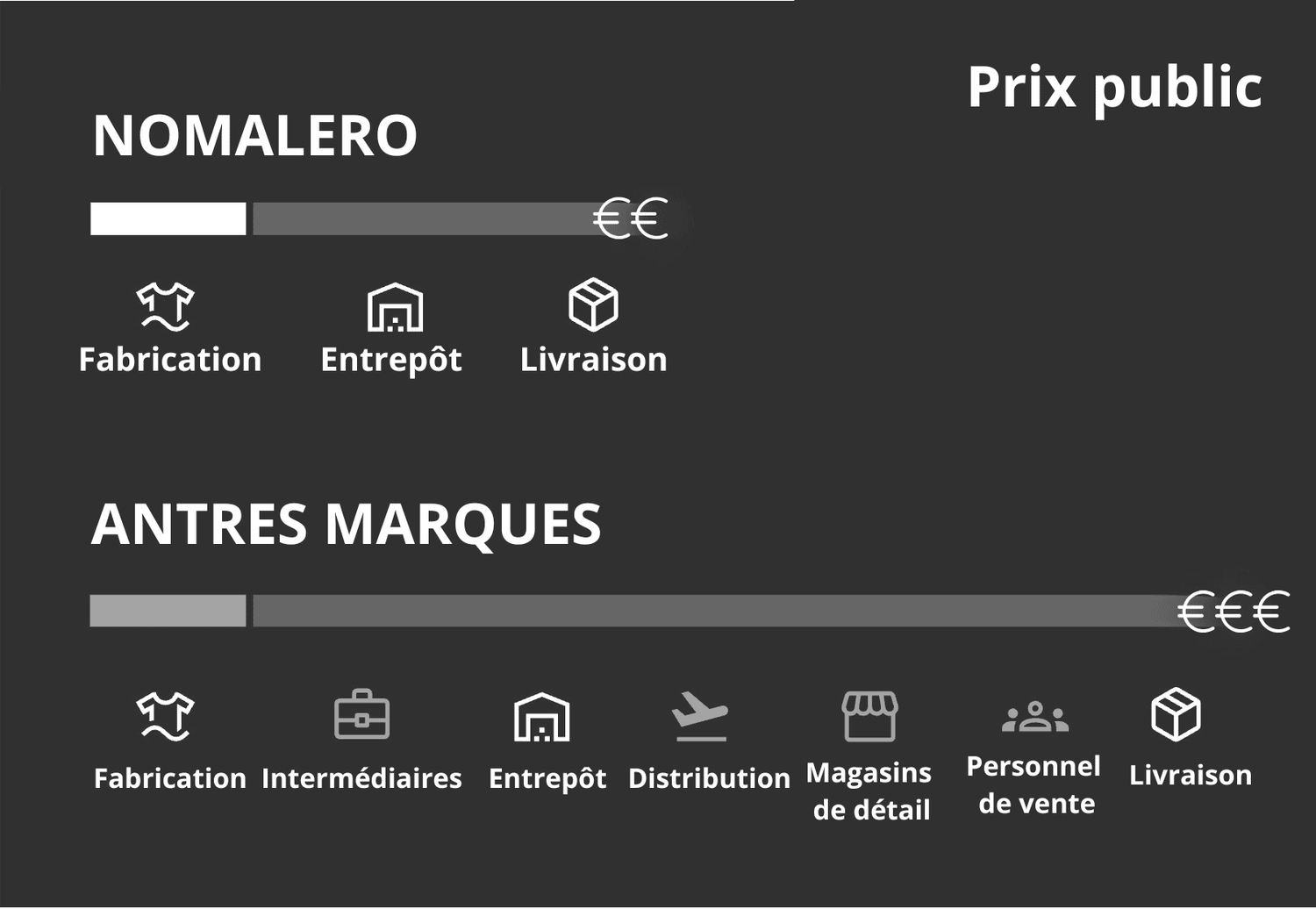 Chez NOMALERO, nous proposons une qualité premium à un prix équitable en supprimant les intermédiaires et les marges excessives.